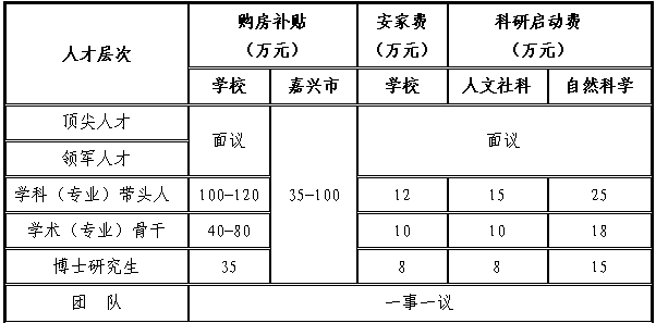注:享受嘉兴市相关人才政策的必须符合政策规定,按规定申请。以上标准仅供参考,根据政策变化适时做相应调整。