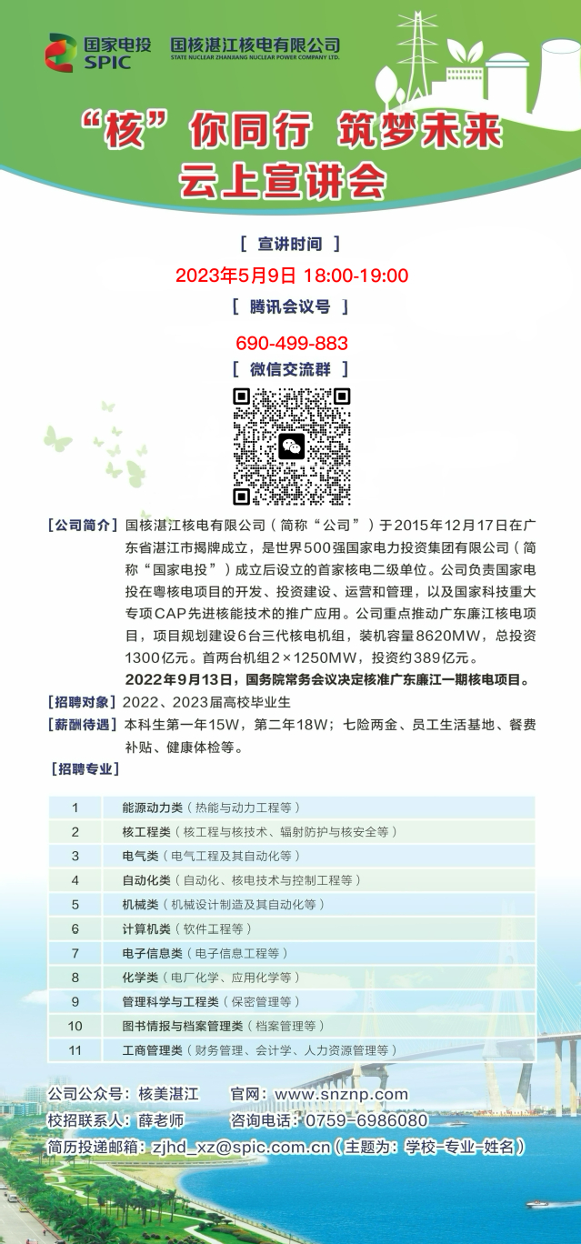 5月9日(本周二)18:00-19:00,#腾讯会议:690-499-883,将举行春招空中宣讲会,想邀请有就业意向的学生参加。烦请老师将相关信息(附件-宣传图)分享至贵院系群聊,请有意向参会的同学扫码加入微信交流群