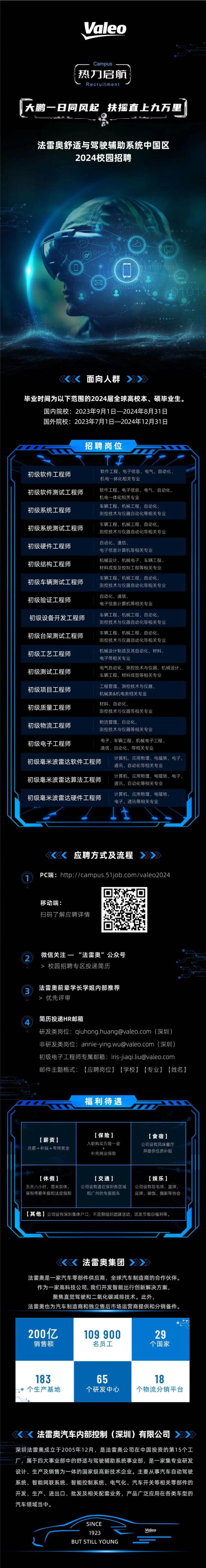 法雷奥舒适与驾驶辅助系统中国区2024校园招聘