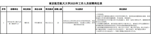 因工作需要,南京航空航天大学(明故宫校区、将军路校区)公开招聘学生辅导员,有关事项公告如下: