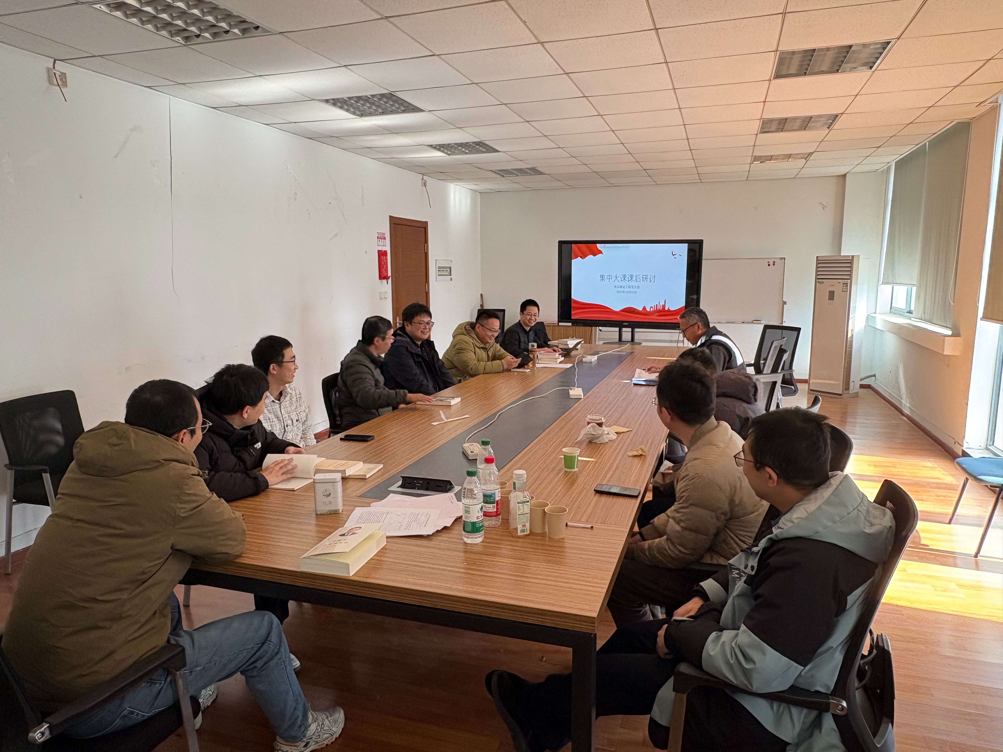 12月3日下午2点,学院机关全体教师在动力楼318会议室参加了304永利集团官网入口“凝心铸魂 同心聚力”集中大课。课上,认真听取了304永利集团官网入口党委书记邬小撑同志的讲话,集中观看了教育部部长怀进鹏主讲的《深入学习贯彻习近平总书记关于教育的重要论述 以教育强国支撑引领中国式现代化》视频课程。课后,围绕“结合本单位工作实际,推进教育、科技、人才‘三位一体’协同融合发展,支撑中国式现代化实践”主题开展研讨,机关11位教师纷纷结合自身岗位职责与工作实际分享学习心得:学院学生办公室教师表示,将以立德树人为核心,统筹思政引领,依托一站式社区强化精准帮扶,完善生涯指导与深造帮扶机制,对接产业需求培养拔尖人才;学院办公室教师认为,行政人员推进“三位一体”协同融合发展的核心是发挥统筹协调、资源配置、服务保障作用,贯通育人、科研、人才培养全链条。